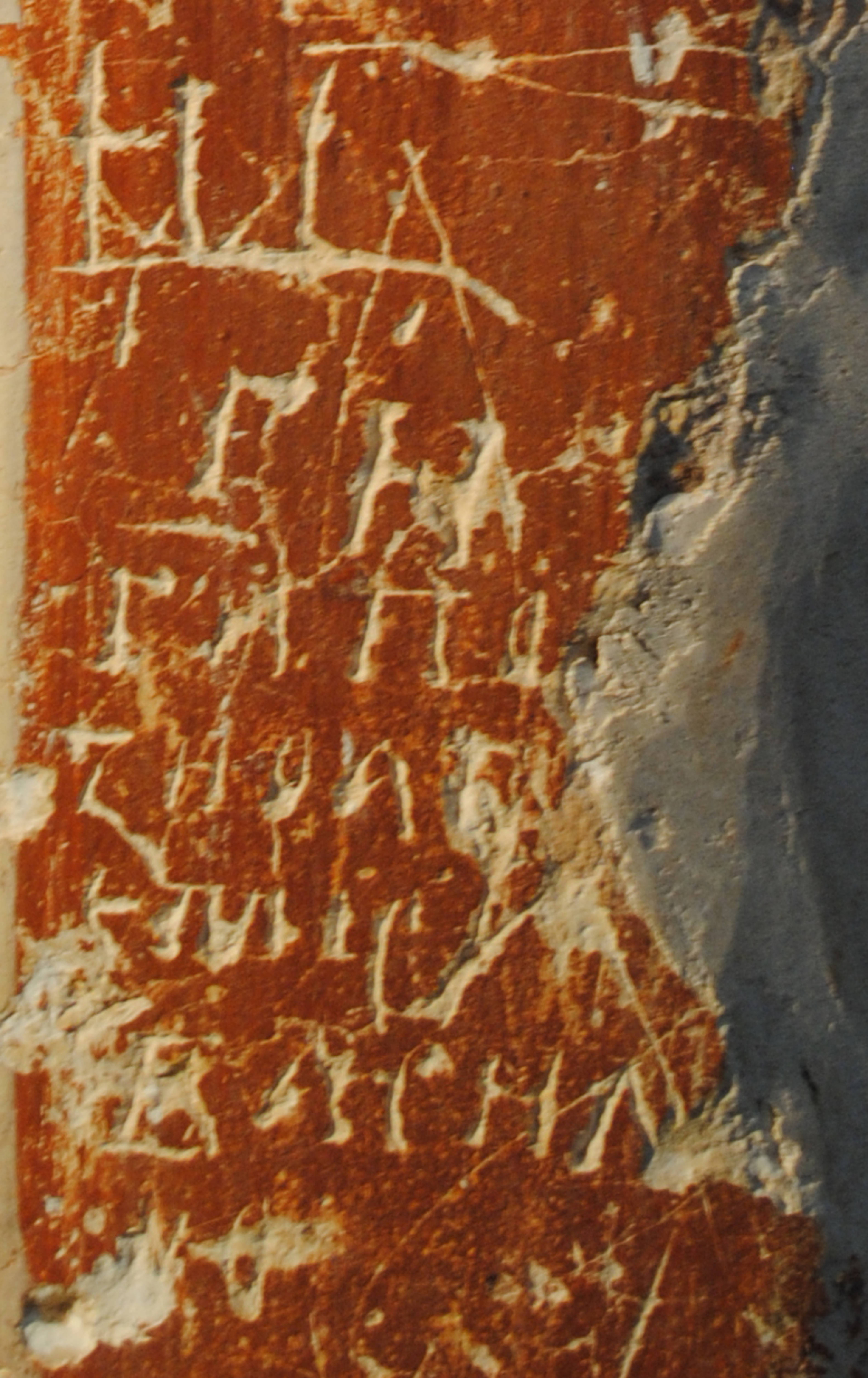 | Расположение на носителе | Южная грань юго-восточного столба. Местоположение: непосредственно под надписью 1 о смерти Кирила и Оксинии, процарапана более мелким почерком по красному фресковому слою у самого края столба. (Рождественская 2016б) |