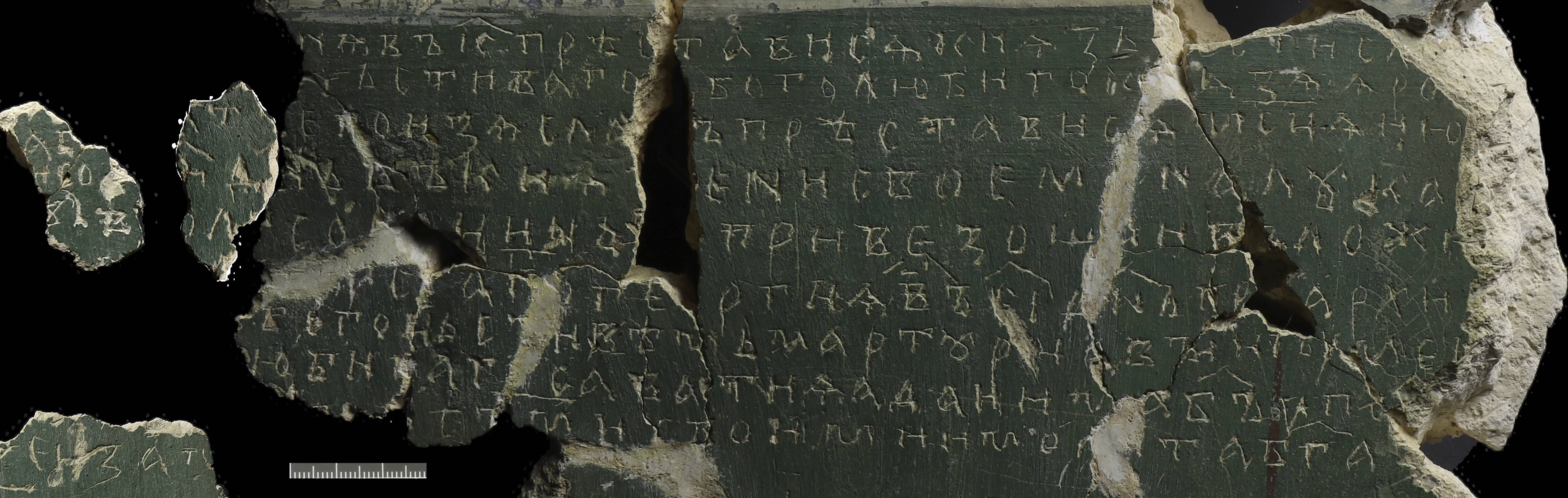 (мсц҃ѧ ию)нѧ въ к҃ прѣстависѧ кнѧзь (Р)[ос]тисл(ав)ъ (Гиппиус 2026)(сн҃ъ бг҃о)чьстиваго (и) боголюбиго к(н)ѧзѧ Ѧро(слав)а [а] (бр)[а]т(ъ) его Изѧсла(в)ъ прѣстависѧ мс҃цѧ ию(л)ѧ въ ѳ҃ дн҃ь въ кнѧ(ж)ени своем(ь) на Лꙋка[х]ъ [н](а) пол[ꙋ]со[р](о)цинь(е и) привезоша и въложи[ш]а (и въ гр)[о](бъ) [оу] с(т҃)аг[о] Ге(о)ргиѧ въ е҃ı дн҃ь пр(и) архи⸗ (епскп)[ѣ] б[о]гоцьстивѣмь Мартꙋри [а] вꙐ игоуме[н]ьс[в](о) (богол)юби[в]аг(о) Саватиѧ а даи има Бъ҃ оупо(к)[о]и (въ вѣк)[ъ] (съ) ст҃ми своими и мо[л](и)та Бг҃а [з](а) оц҃а и за м(атерь) (мс҃цѧ ию)нѧ въ к҃ прѣстависѧ кнѧзь (Р)[ос]тисл(авъ сынъ) (Гиппиус, Щеголькова 2024)(бого)чьстиваго (и) боголюбиго к(н)ѧзѧ Ѧро(слава)[а] (бр)[а]т(ъ) его Изѧсла(в)ъ прѣстависѧ мс҃цѧ ию(лѧ) в(ъ) ѳ҃ дн҃ь въ кнѧ(ж)ени своем(ь) на Лꙋка(хъ) [н](а п)ол[ꙋ]со[р](о)цинь(е и) привезоша и въложи(ша и) (въ гр)[о](бъ) [оу] с(т)аг҃[о] Ге(о)ргиѧ въ е҃ı дн҃ь пр(и) архи(епи)⸗ (скоуп)[ѣ] б[о]гоцьстивѣмь Мартꙋри [а] вꙑ игоуме[н](ьство) (богол)юби[в]аг(о) Саватиѧ а даи има Бъ҃ оупо(коение) (вѣчно)[е] (съ) ст҃ми своими и мо[л](и)та Бг҃а [з](а) …и за м… (мс҃цѧ ию)нѧ въ к҃ прѣстависѧ кнѧзь (Р)[ос]тисл(авъ сꙑнъ) (Гиппиус, Седов 2016)(благо)чьстиваго (и) боголюбиго к(н)ѧзѧ Ѧро(слава) (а сꙑнъ) е[г]о Изѧсла(в)ъ прѣстависѧ мс҃цѧ ию-- (въ -- д)н҃ь въ кнѧ(ж)ени своем[ь] на Лꙋка(хъ) -----со--цинь-- привезоша и в[ъ]лож[и](ша -) (въ гробъ оу с)[т҃]аг[о] Ге(о)ргиѧ въ е҃i дн҃ь пр(и) архи(епи⸗) (скоупѣ блг҃о)[ц]ьс[т]ивѣ[м]ь Мартꙋри а вꙑ и[г]оуме[н](ьство) (боголюбив)аг(о) Саватиѧ а даи има Бъ҃ оупо(коение) (вѣчное съ) с[т҃]ми своими и мо[ли]та Бг҃а з(а нꙑ) |